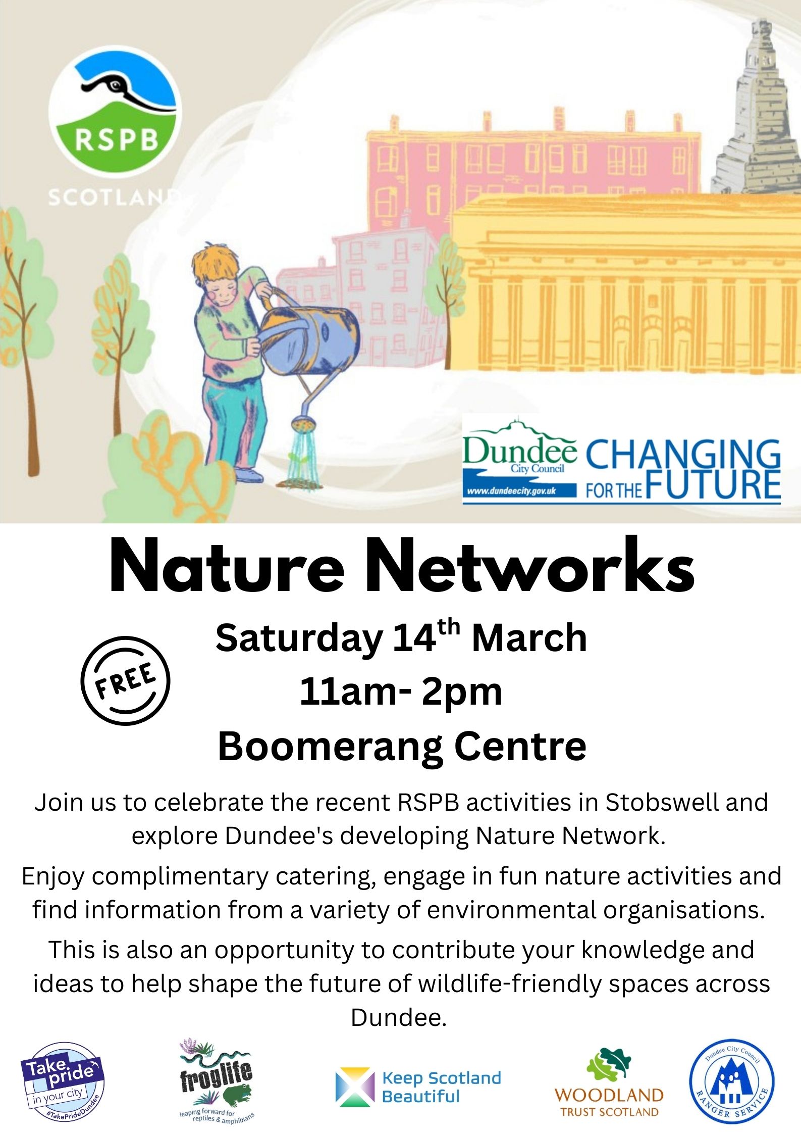 Please see the poster below for the upcoming event, which Dundee City Council are running with RSPB, to kick start the consultation and highlight the good work that the RSPB has been doing in Stobswell over the last year.