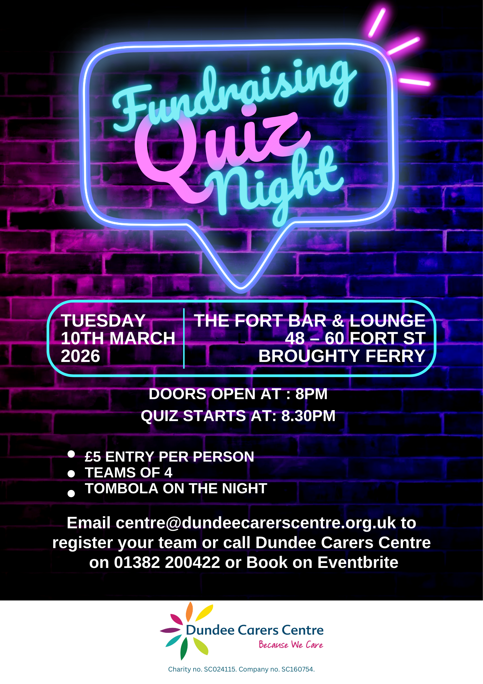 Please see the below poster and registration link below for the Fundraiser quiz, for Dundee Carers Centre.