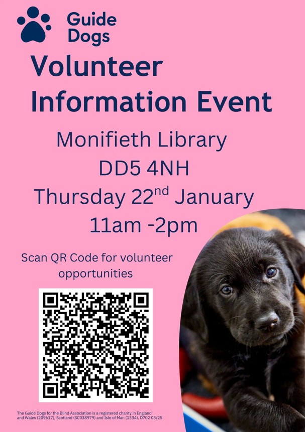 Join us at Monifieth Library for an informal and welcoming session where you’ll learn about the many rewarding ways to get involved — from supporting our local community teams to puppy raising, fostering a trainee guide dog, and much more.