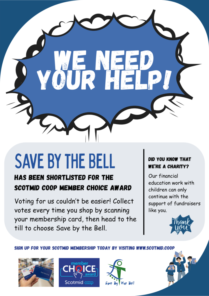 Save by the Bell is a charity providing financial inclusion work in schools across Dundee, encouraging the development of good saving habits by pupils. Details of how to show your support and what it could mean to the project are in the below –