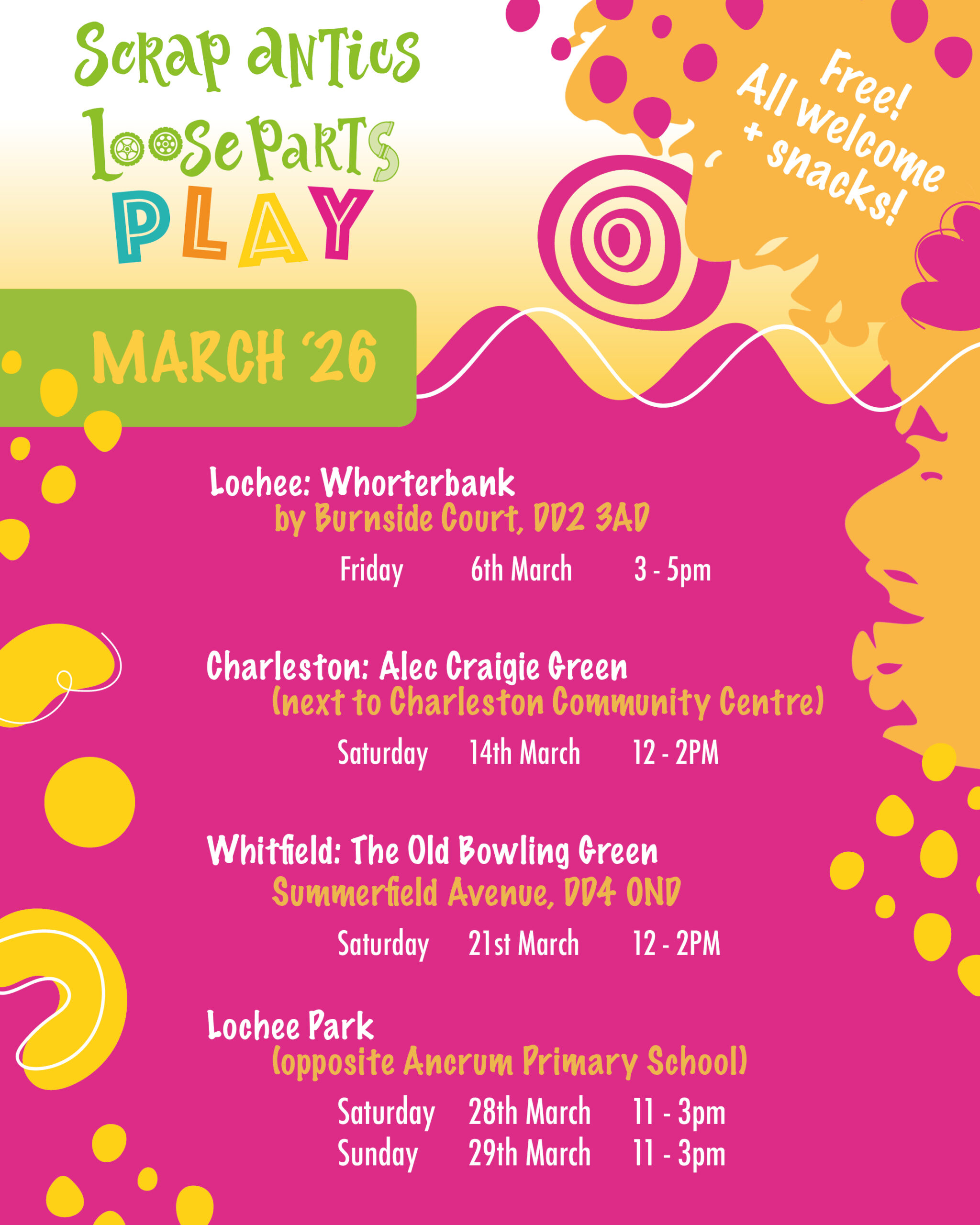 ScrapAntics are holding free Loose Parts Play Sessions this month across Dundee. As always, these sessions are open to everyone.