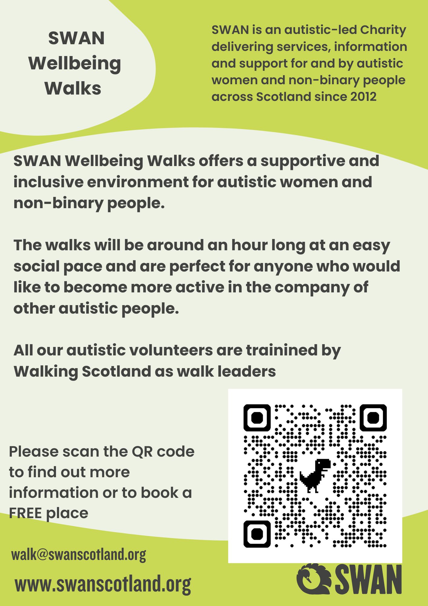 If you have any questions or would like to learn more about our Wellbeing Walks, please email walk@swanscotland.org
