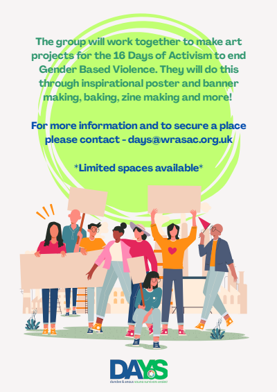 On the run up to 16 Days of Activism, Our DAYS Service are facilitating an Activism Group for young people from Dundee and Angus to attend. This is a 4-week programme of activities with a big focus on craftivism – a gentle but powerful form of activism, whilst raising awareness and promoting action towards ending gender-based violence.